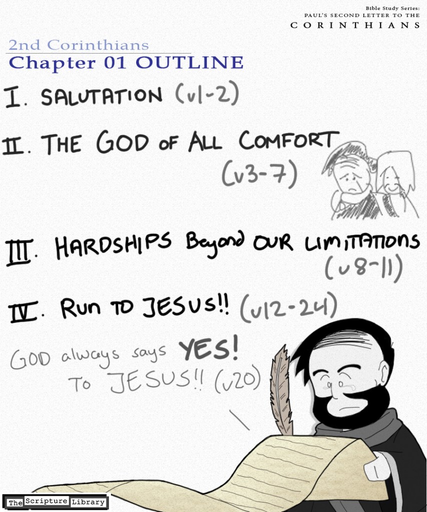 This is the reason why Paul is talking about sufferings, hardships, and reconciliations in the beginning sections of this letter (ch.1-7). Aside from forgiving them, he wants them to learn the significance of sufferings and hardships in the Christian life, particularly of their leaders. And for starters, Paul starts with God as the “God of all comfort.”