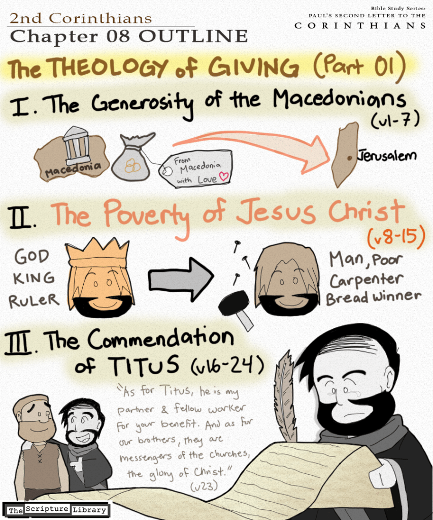 Chapters 8 and 9 of 2nd Corinthians constitute a new section with a new topic: THE THEOLOGY OF GIVING.