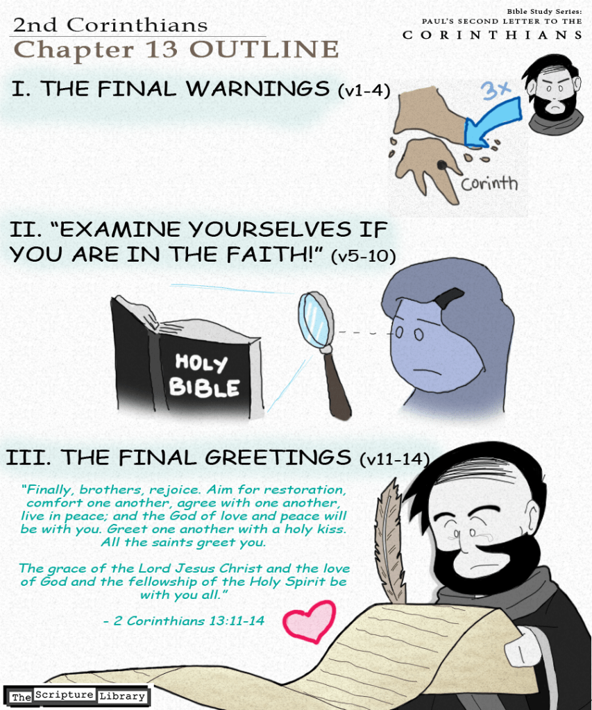 Chapter 13 concludes both the letter and the final arc of Paul’s second letter to the Corinthians. In this arc, Paul addresses the rebellious Christians in Corinth who refuse to respect his leadership and prefer the super-apostles instead.