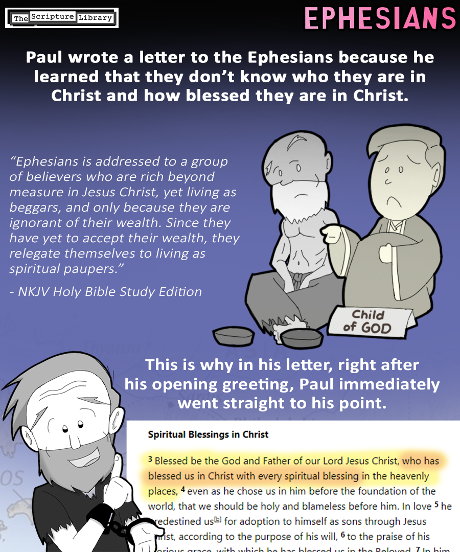 Well, the reason why Paul wrote this letter with this theme was to address a problem that he heard about the Ephesians. And according to studies, the Ephesians didn’t know who they are in Christ and how blessed they are in Christ. As a result, they weren’t living the full potential of their life in Christ. And that is a big problem.